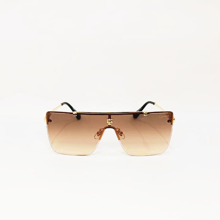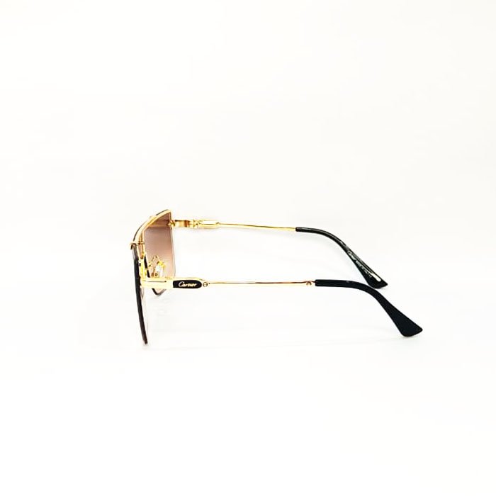 The gradient brown lenses provide a smooth transition tint for enhanced visual comfort and superior sun protection, while the premium gold-tone metal frame adds a touch of refined sophistication. Adjustable nose pads ensure a comfortable, secure fit, and the slim temples with black-accented tips complete the polished design.