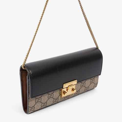 Gucci Padlock Wallet On Chain Beige And Ebony GG Supreme Black Coated Canvas
